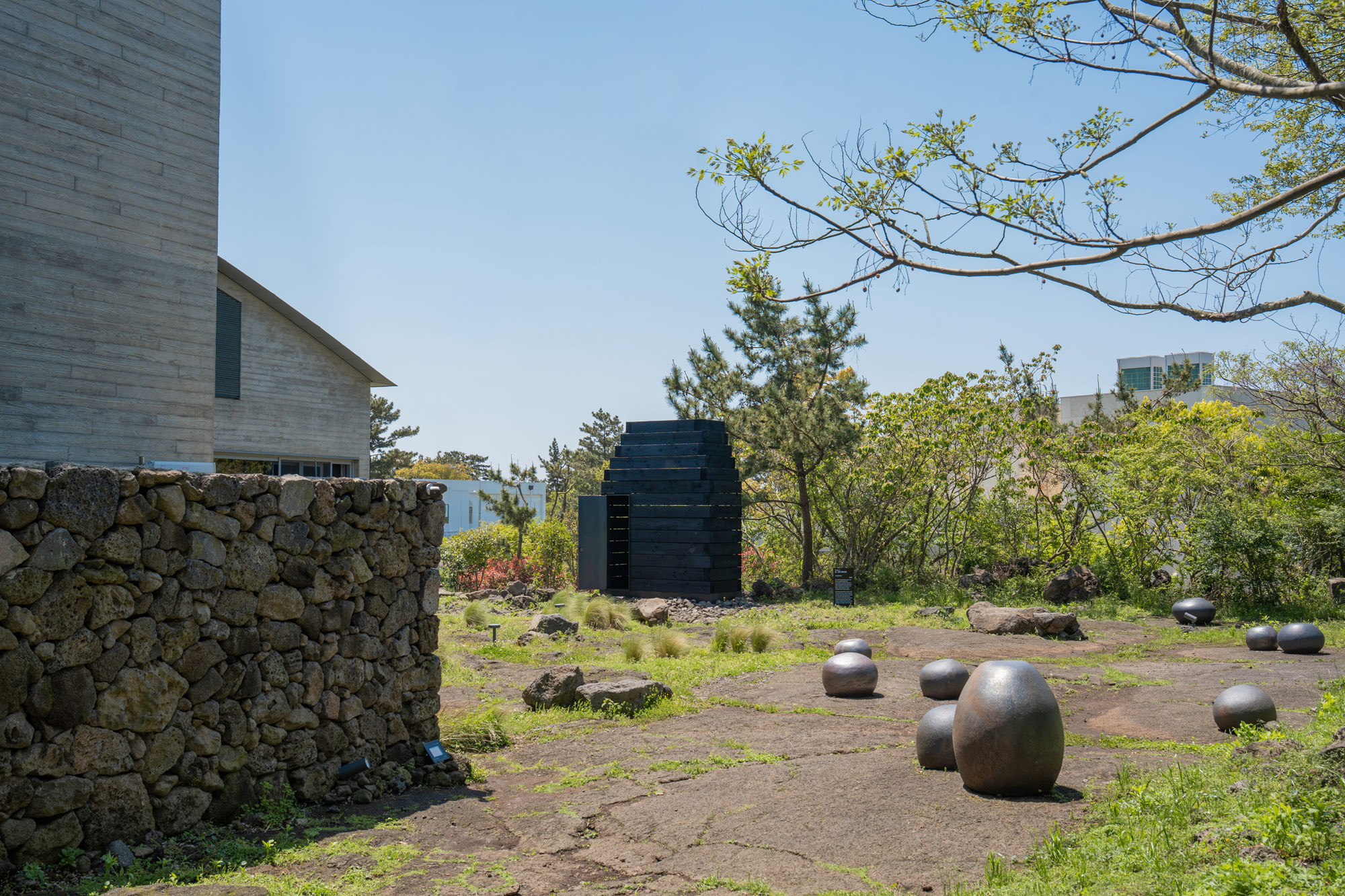 목재 사이 12mm의 틈은 단순한 건축적 조인트를 넘어, 제주의 빛과 바람을 공간 안으로 스며들게 하는 섬세한 필터 역할을 수행한다. 이 틈 사이로 흐르는 빛은 형태를 부각시키거나 공간을 해설하지 않는다. 오히려 빛은 ‘존재’로 머물며, 공간 안에 미묘한 물질적 인상(material impression)을 남긴다. 이 뮤지엄에서 목재의 거친 결과 불에 탄 표면, 그리고 스며드는 빛은 제주의 바람, 습도, 냄새, 그리고 시간의 흐름까지를 응축된 감각으로 불러낸다.