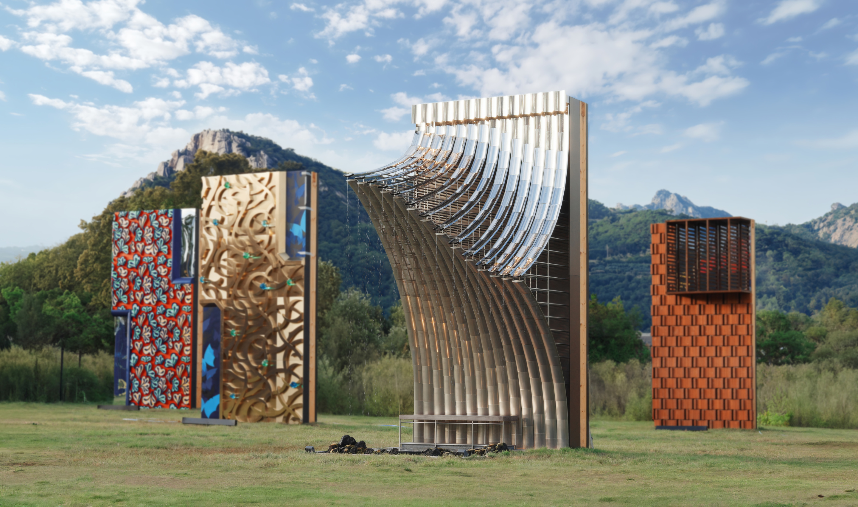 현대자동차그룹이 디자인한 이 작품은 한국 전통 건축의 개념인 ‘허체虛體’를 표현했다. 특히 자동차 외장재로 사용하는 금속을 활용해 파사드를 단순한 벽이 아닌 건물 전체를 상상하게 하는 매개체로 해석한 관점이 돋보인다. 현대자동차그룹은 열린송현 녹지광장 주변을 둘러싼 북한산, 북악산, 인왕산의 산세와 자연스럽게 이어지는 곡선의 처마를 디자인하고, 처마 위로 물이 흐르도록 설계해 그 아래 벤치에 앉아 빗방울이 떨어지는 모습을 바라볼 수 있도록 했다. 한국 전통 건축의 대청마루와 같은 여유로운 분위기를 의도한 것이다.
