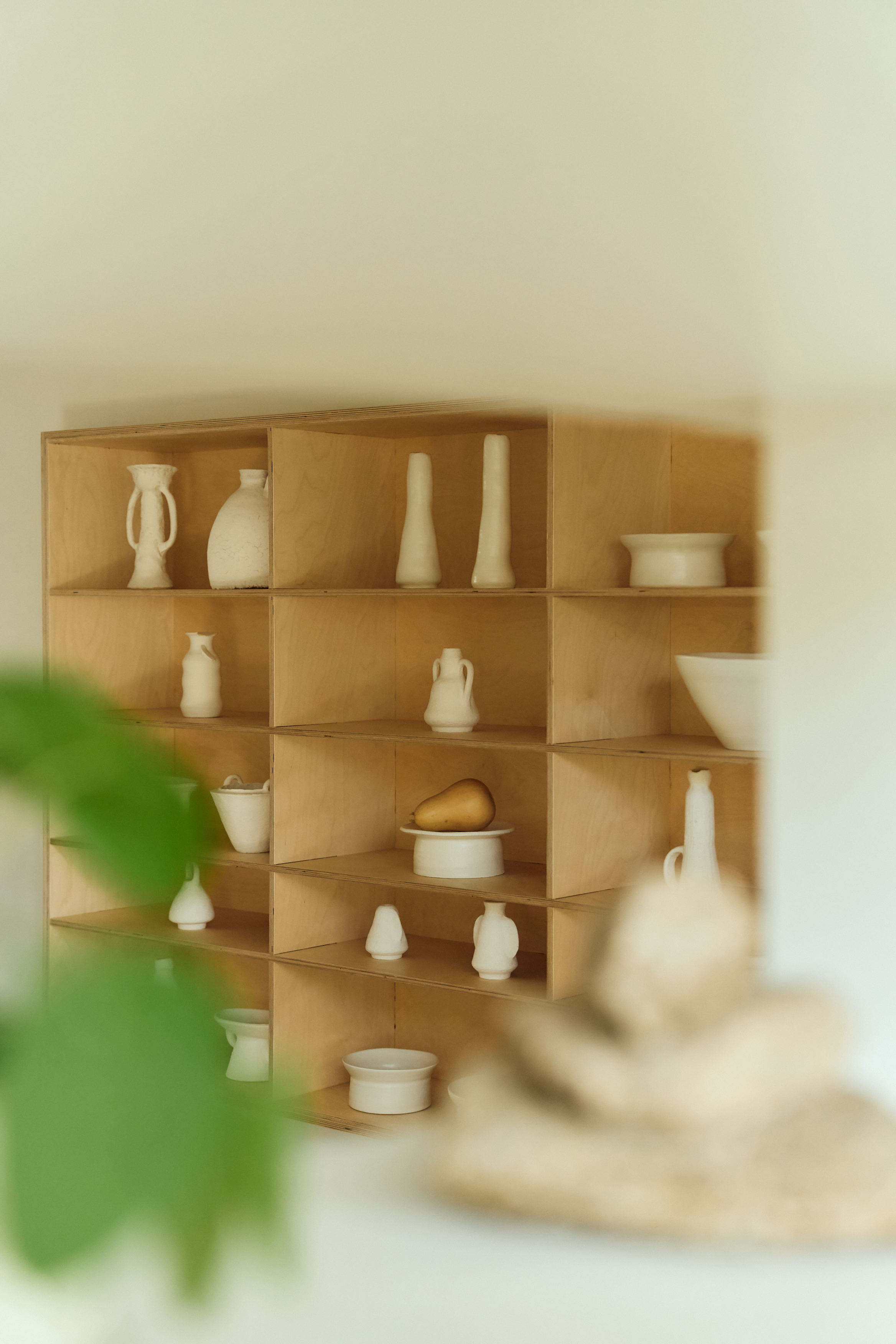 집의 분위기를 완성하는 벽과 코너(Wall & Nook)에는 희스튜디오의 분청 오브제와 이스트스모크의 화분이 공간의 여백을 채운다. 세밀한 터치로 공예의 존재감을 은은하게 드러낸다.
