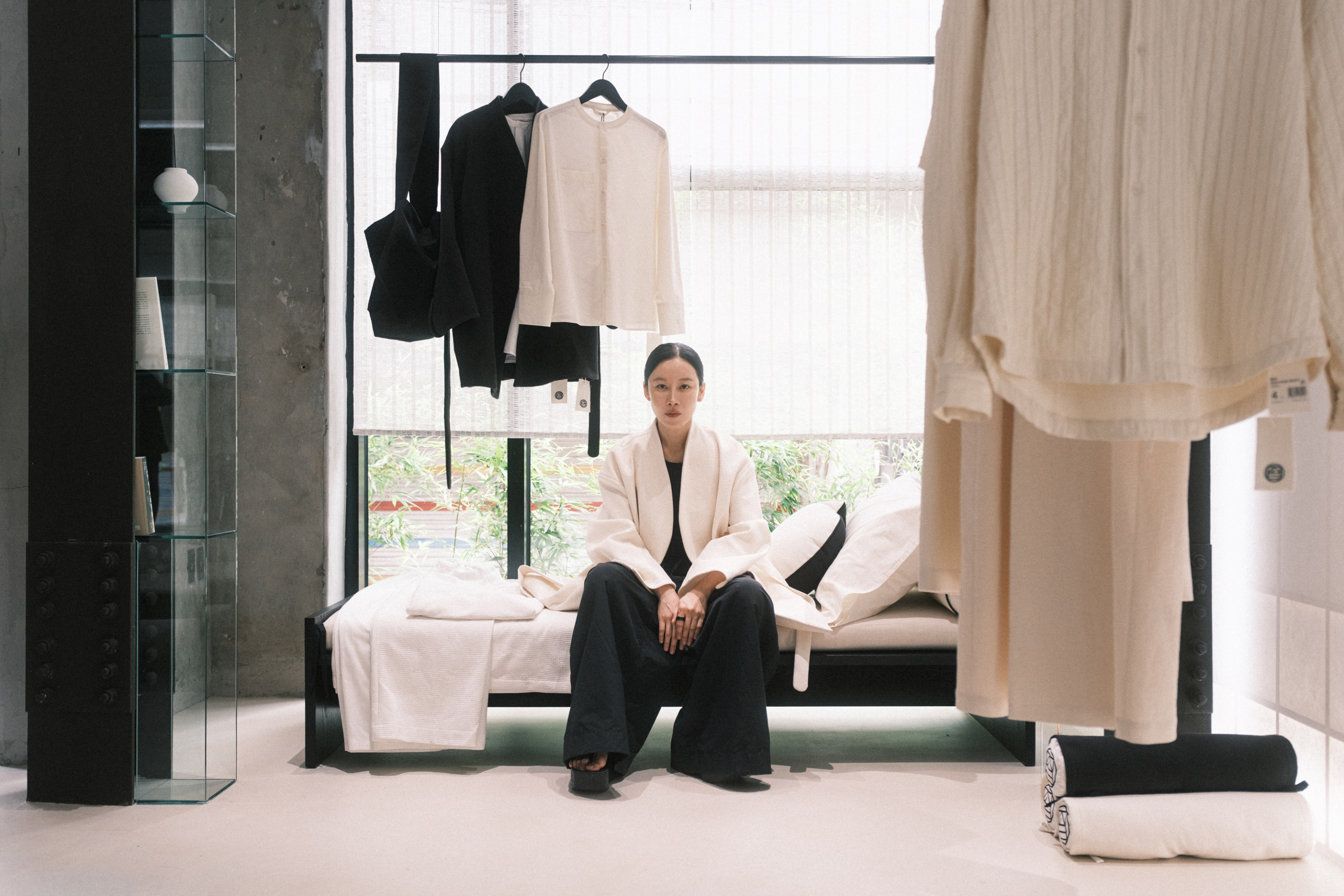 박민아 디자이너는 주요 제작 과정에서 직접 ‘핸드 피니싱’을 유지한다. 완벽한 마감보다 손으로 마무리되는 질감과 인간적인 완성도를 중시하기 때문이다. 소재 선택의 기준은 국산 원재료, 품질, 텍스처 세 가지다. 국내에서 조달 가능한 자재를 우선 사용하되, 품질이 현저히 떨어질 경우 예외를 둔다. 누비 원단, 자카드 데님 등 현대적 소재에 전통 제작 방식을 접목해 ‘현대적 공예’의 형태를 제시하며, 모든 제품과 공간이 지속가능한 생산 체계 안에서 완성된다.