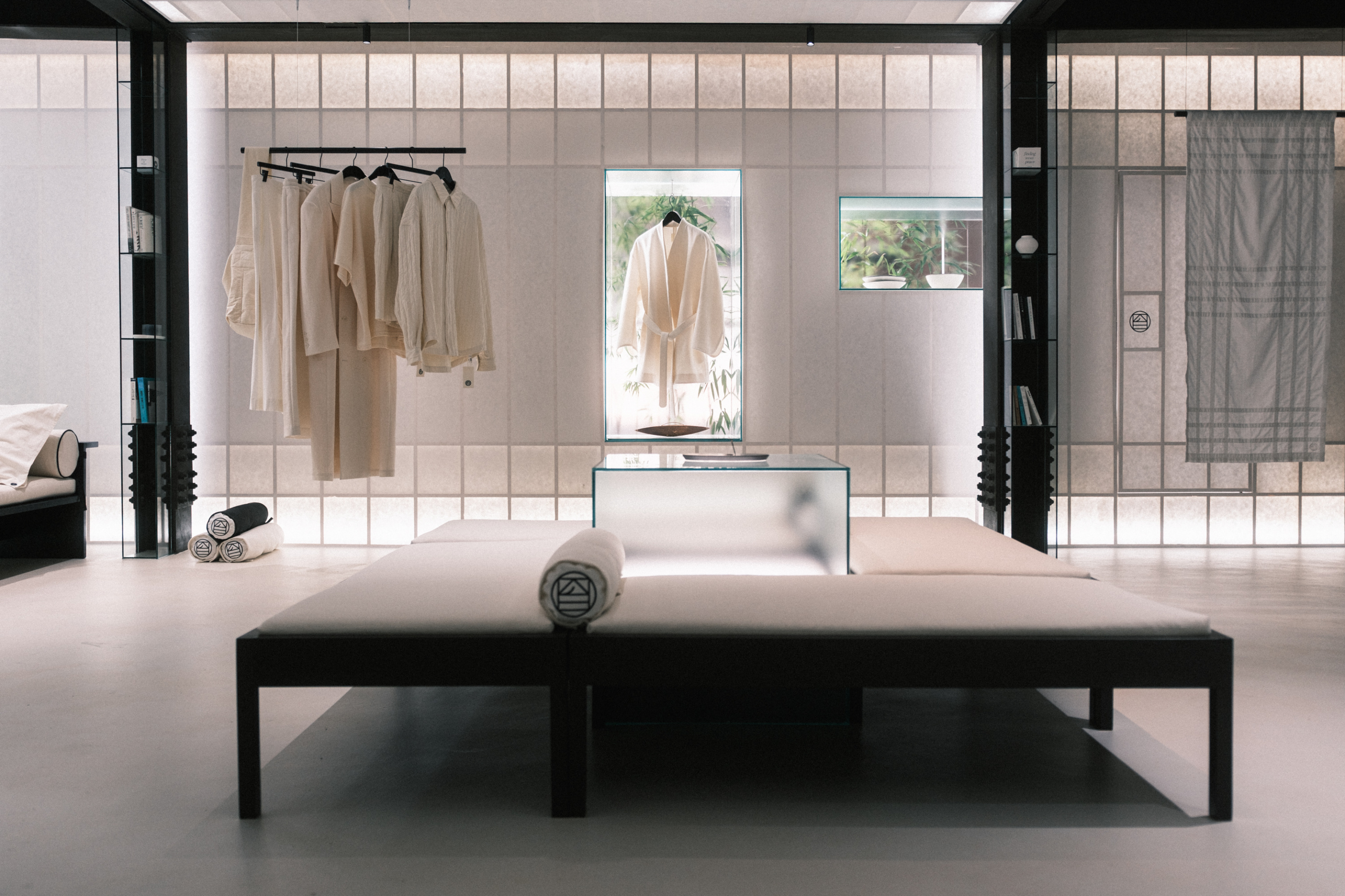 소백의 첫 플래그십을 어느 스튜디오가 맡을지 다들 궁금해 했어요. 하지만 첫 공간인 만큼 제가 직접 해야 한다고 생각했죠. 이곳은 저에게 제품 디자인의 확장 버전이에요. 사람이 그 안에 있을 뿐, 구조와 골조는 모두 실용적인 기반 위에서 설계됐어요. 인위적으로 한국적인 요소를 더하기보다 제 기억 속 풍경을 끄집어내고 싶었죠. 어릴 적 아버지가 운영하시던 바둑 기원이 가장 큰 모티프였어요. 바둑판의 그리드를 공간 구조로 옮기고, 입구 손잡이와 피팅룸 행거까지 모두 바둑알에서 출발했어요.
