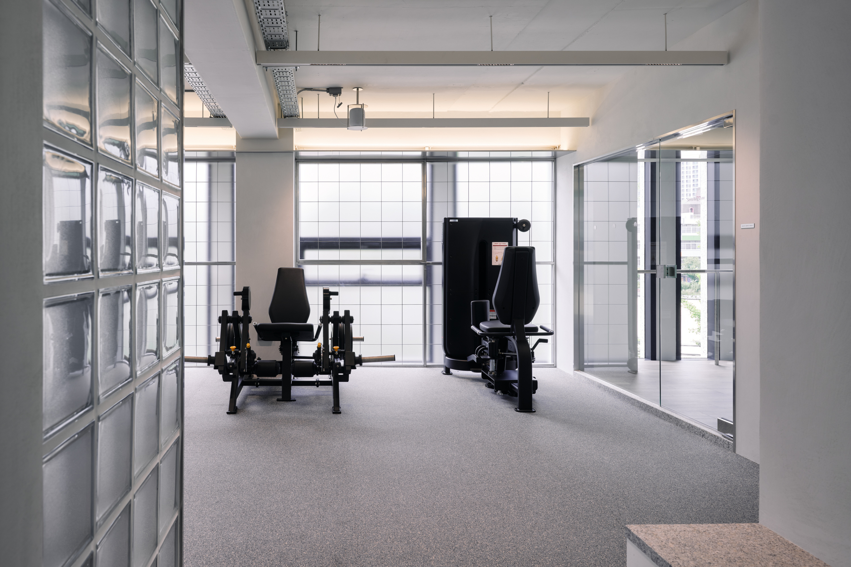 두 개 층으로 이루어진 공간은 하나의 개념을 서로 다른 매력을 선보인다. 자연광이 들어오는 3층은 반복 패턴을 통해 빛을 정제하고 균형을 맞추는 공간으로 설계됐다. 반면 지하층은 적극적인 반사와 확장을 통해 운동의 집중과 에너지를 시각적으로 증폭시킨다. 같은 내러티브를 유지하면서 다른 톤으로 표현된 두 층은 마치 하나의 세계관을 다른 챕터로 나누어 보여주는 방식이다.