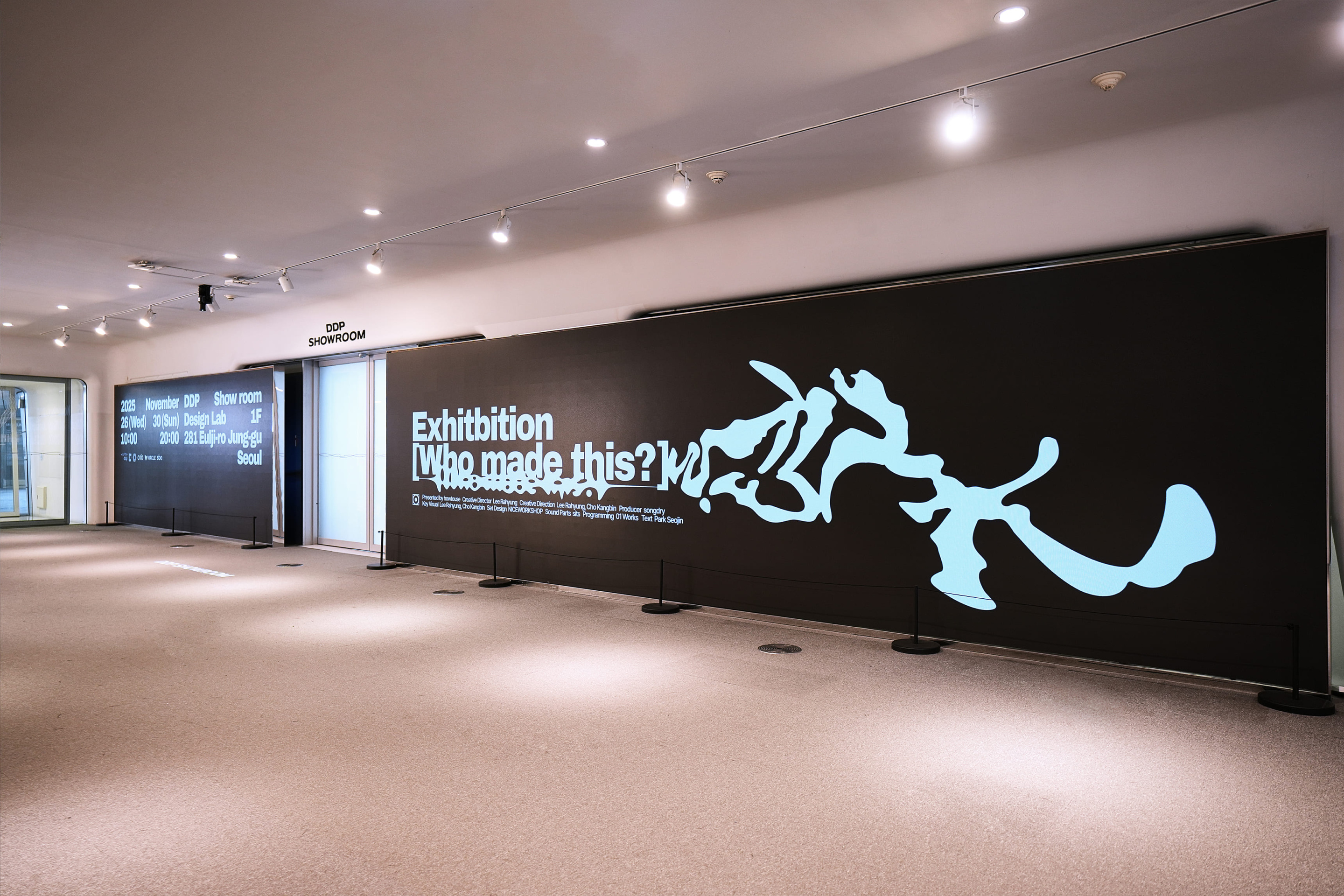 [Who made this?]는 전자음악을 중심으로 사운드, 그래픽, 공간 디자인, 관객의 행위가 결합된 전시다. 음악 레이블에서 출발한 이 프로젝트는 전자음악의 제작 구조를 시각과 공간, 참여의 영역으로 확장하며, 서로 다른 분야가 맞물려 작동하는 새로운 형태의 전시를 제안한다.
