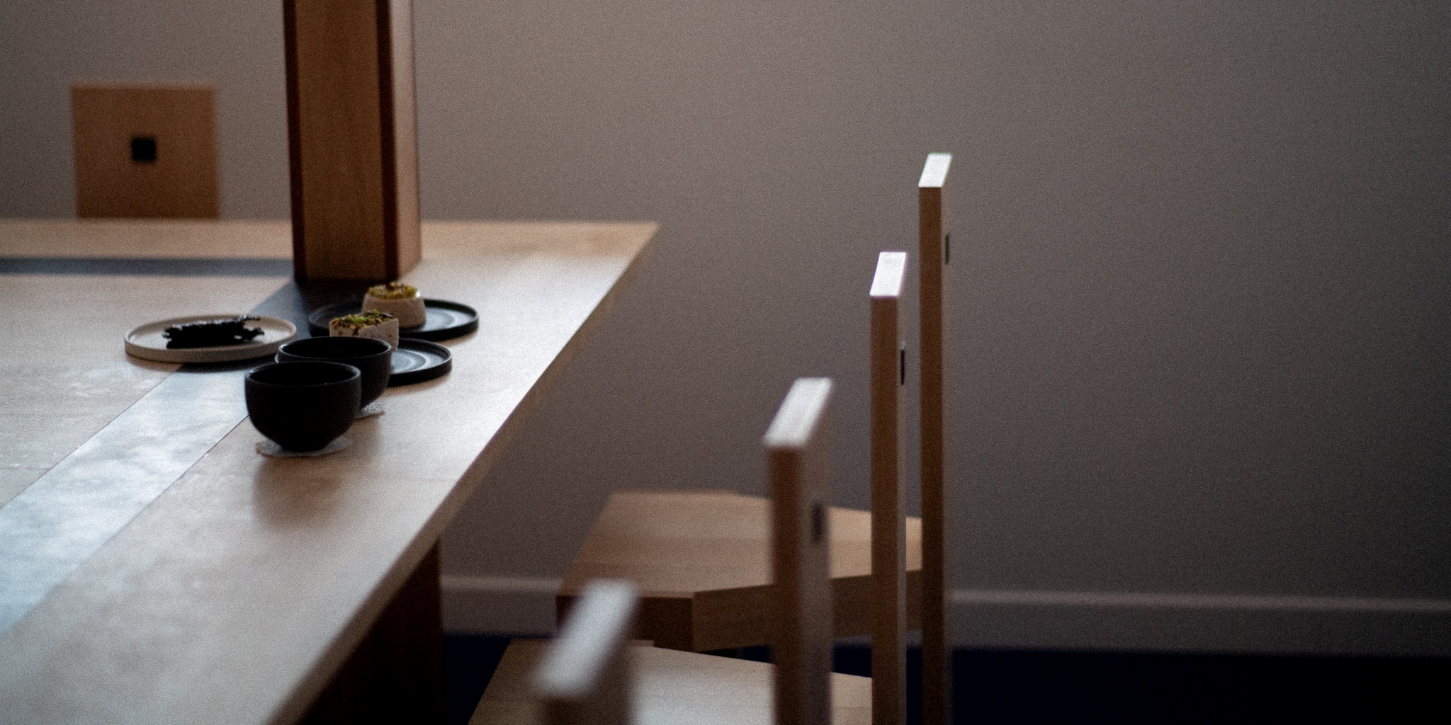 보통의 상업 공간에서는 테이블을 나눠 배치하는 경우가 많은데, 아사시에서는 하나의 큰 테이블을 선택하셨어요.