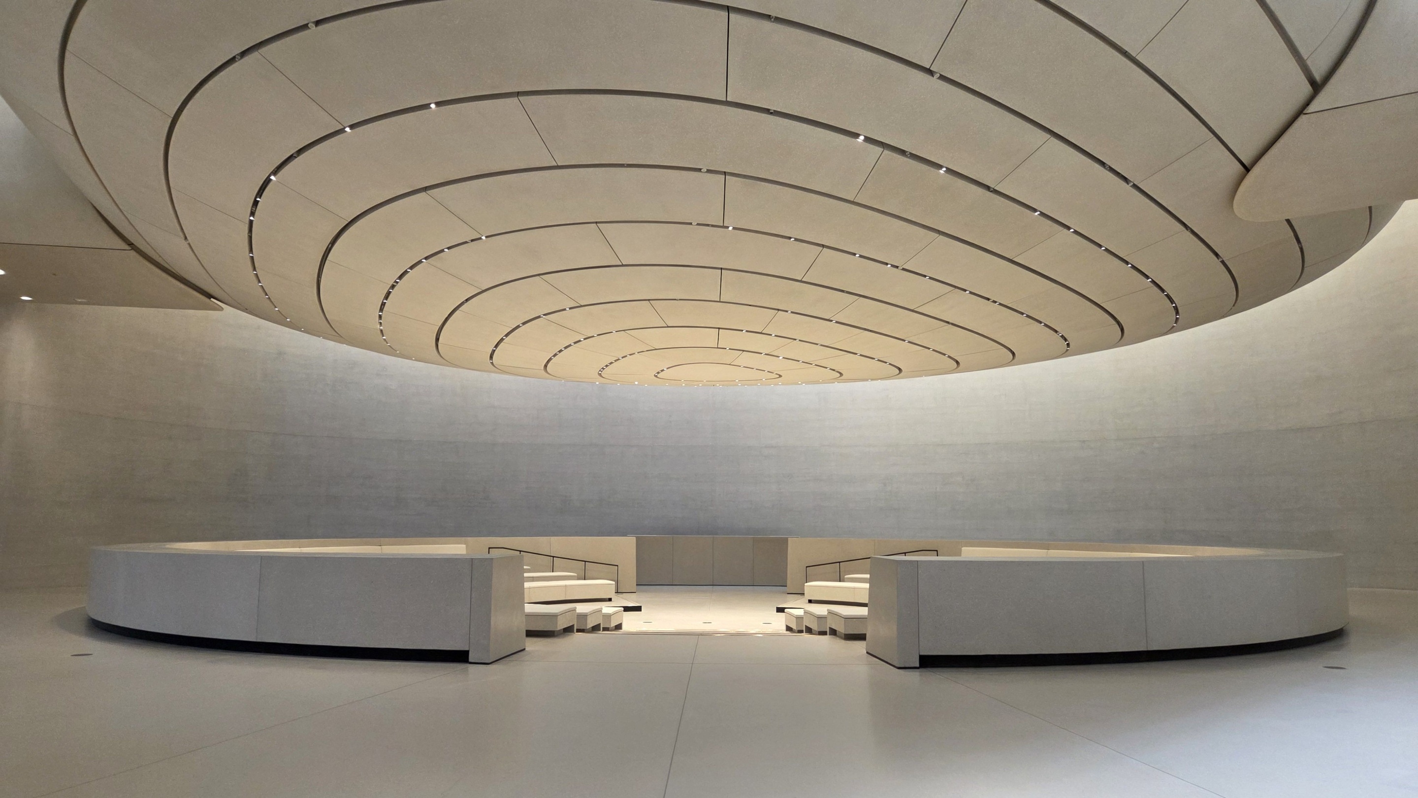 직경 180m에 이르는 거대한 돔은 아랍의 전통 창살인 ‘마슈라비야(Mashrabiya)’를 현대적으로 재해석한 패턴으로 이루어져 있다. 여러 겹의 층이 정교하게 맞물려 있는 구조는 태양의 위치에 따라 빛과 그림자가 끊임없이 변하도록 설계된 결과다. 이로 인해 연출되는 ‘빛의 비(Rain of Light)’는 미술관의 백미로 꼽힌다. 푸른 바다와 하얀 벽, 그리고 은빛 돔 사이로 비쳐드는 빛이 하나로 장면으로 어우러지는 모습은 절로 감탄이 나오게 한다. 지역의 문화적 맥락을 바탕으로 자연과 사람의 만남을 주선하는 자리는 그 어느 것과 비교할 수 없는 독보적인 아름다움을 드러낸다.