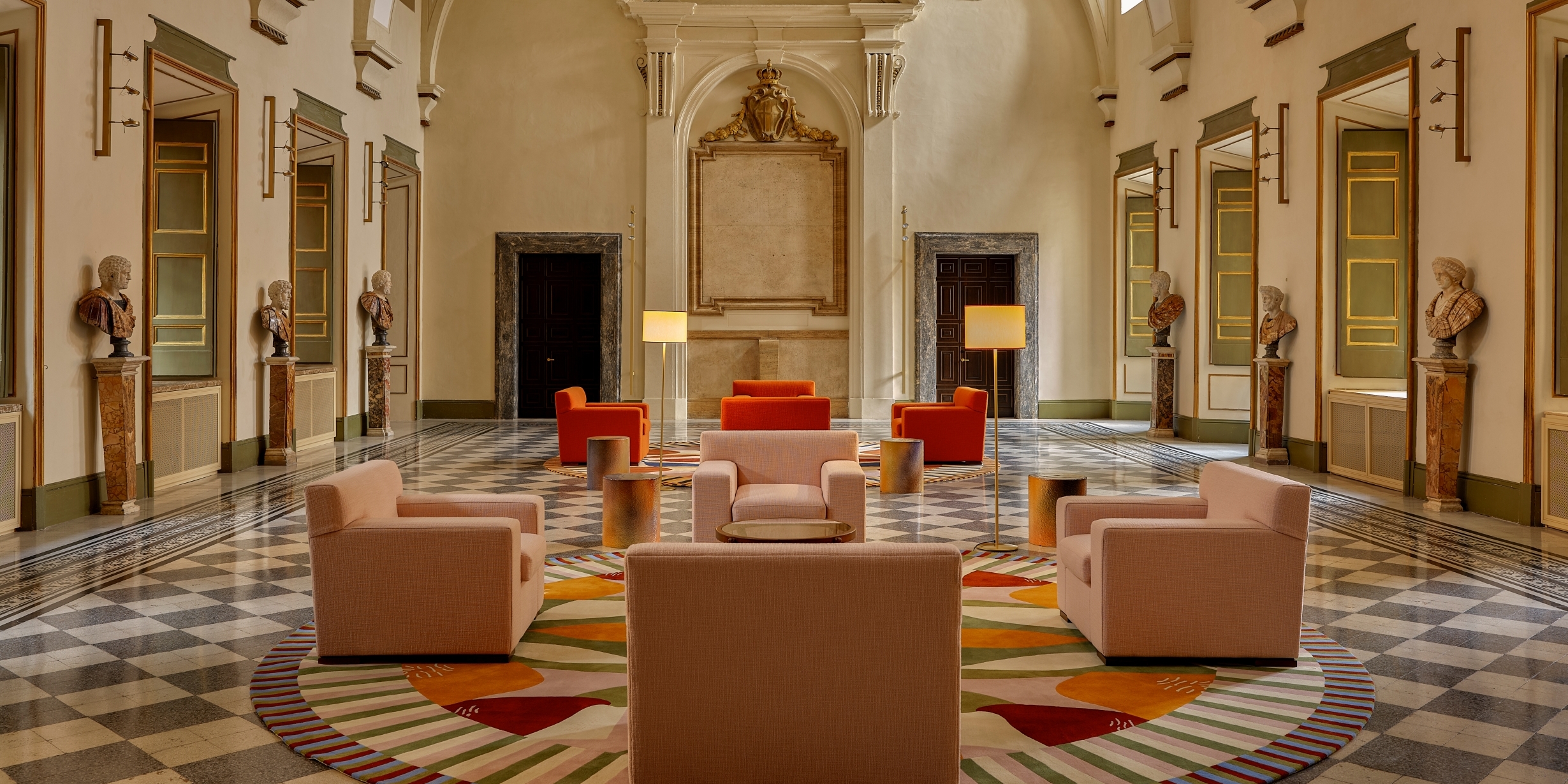 루카 구아다니노가 색채와 기하학, 장인정신을 바탕으로 16세기 로마 팔라초를 현대적 부티크 호텔로 재해석했다.