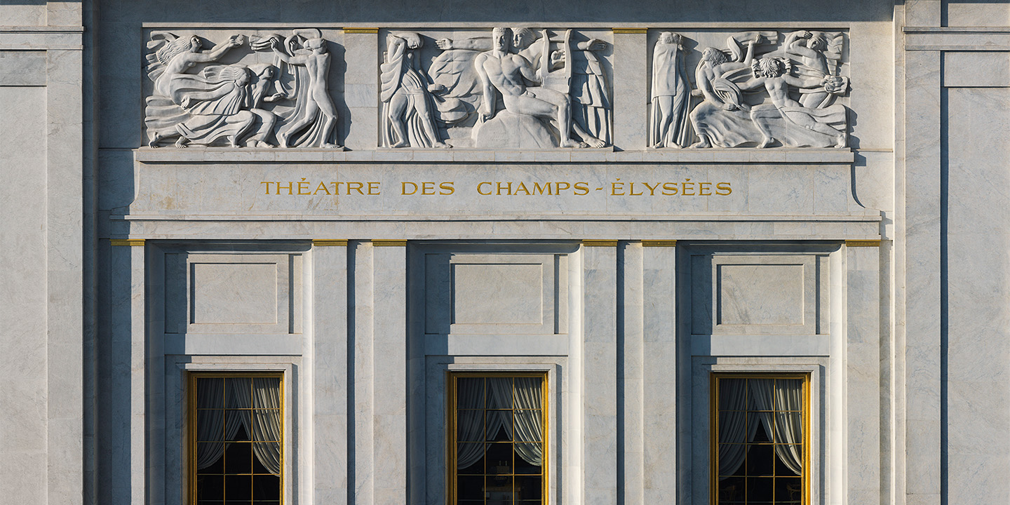 1913년 개관한 파리 샹젤리제 극장(Théâtre des Champs-Elysées)은 오귀스트 페레(Auguste Perret)가 설계한 20세기 초 근대 건축의 상징적인 건축물이다. 철근 콘크리트 구조를 전면에 드러낸 이 극장은 아르데코 양식의 태동을 알린 역사적 장소로, 단순히 공연을 위한 공간을 넘어 건축과 예술, 장식 미술이 결합된 총체적 작품으로 평가받아 왔다.