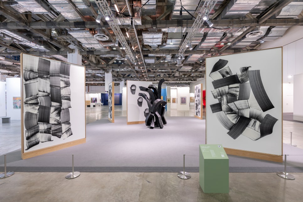 경제적 불확실성 속에서도 총 43,000명 이상의 방문객을 동원한 아트 SG 2026은 폭발적인 거래량을 기록하며 시장의 건전성을 입증했다. 특히 한국 미술, 일명 K 아트의 활약은 현장에서 가장 뜨거운 화제였다. 한국의 조현화랑(Johyun Gallery)은 ‘숯의 거장’ 이배(Lee Bae) 작가의 솔로 부스를 구성해, 숯을 활용한 대형 설치 작품부터 최신 ‘Brushstroke’ 시리즈까지 선보이며 전시된 작품 전량(20점 이상)을 완판시키는 기염을 토했다. 보고된 총매출액만 275만 8,000달러(약 37억 원)에 달하며, 이는 이번 페어에서 단일 작가 부스가 거둔 가장 독보적인 성과로 평가된다.