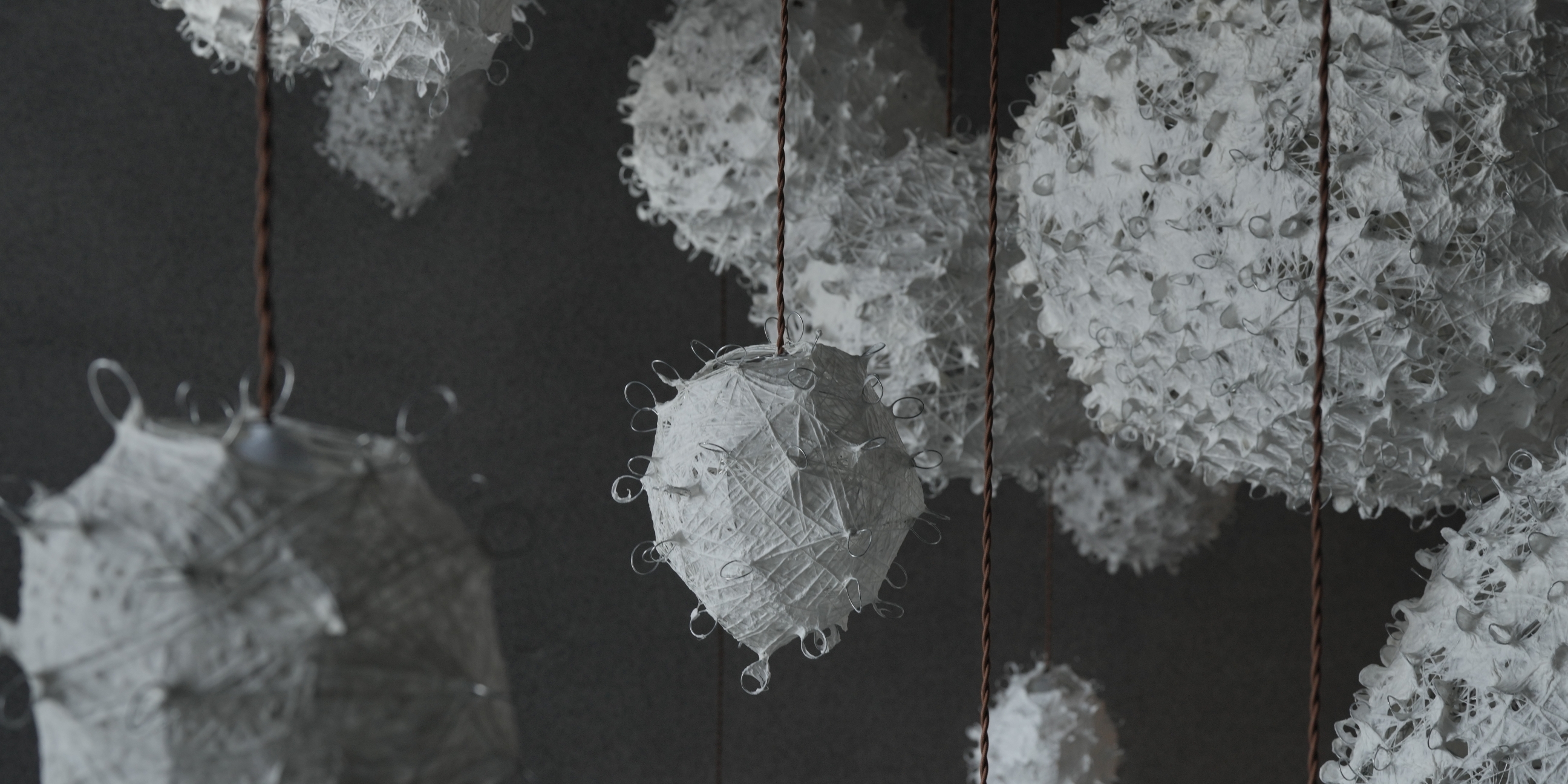 일반적인 한지 조명이 표면을 고르게 메우는 것과 달리, 이 작품들은 채워지지 않은 부분과 모자란 부분까지 그대로 드러낸다. 불완전한 형태는 오히려 인간을 닮아 있다. 외관상 비슷해 보여도 타자로 환원될 수 없으며, 그 고유함 자체가 곧 존엄이라는 메시지다. 전시장 내 다양체들은 크기 주름의 깊이, 한지의 농도가 제각각이다. 같은 방식으로 만들어졌으나 똑같은 결과물은 단 하나도 없다.
