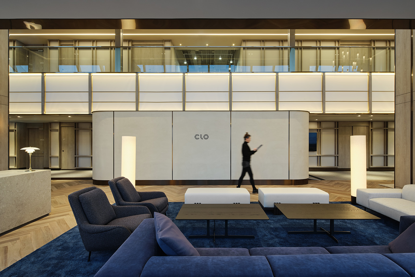 설계 전 현장을 처음 방문했을 때다. 유리창을 수직으로 가르는 멀리언이 실내에 드리우는 사선의 긴 그림자를 본 순간, 베틀의 실이 공간에 내려앉는 듯한 인상을 받았다. 그 장면은 클로가 디지털 환경에서 매일 수행하는 직조, 즉 가상의 실로 옷을 짓는 과정을 떠올리게 했다. 이 인상이 단서가 되어 라운지 공간 자체가 하나의 거대한 직조물이 되도록 표현했다.