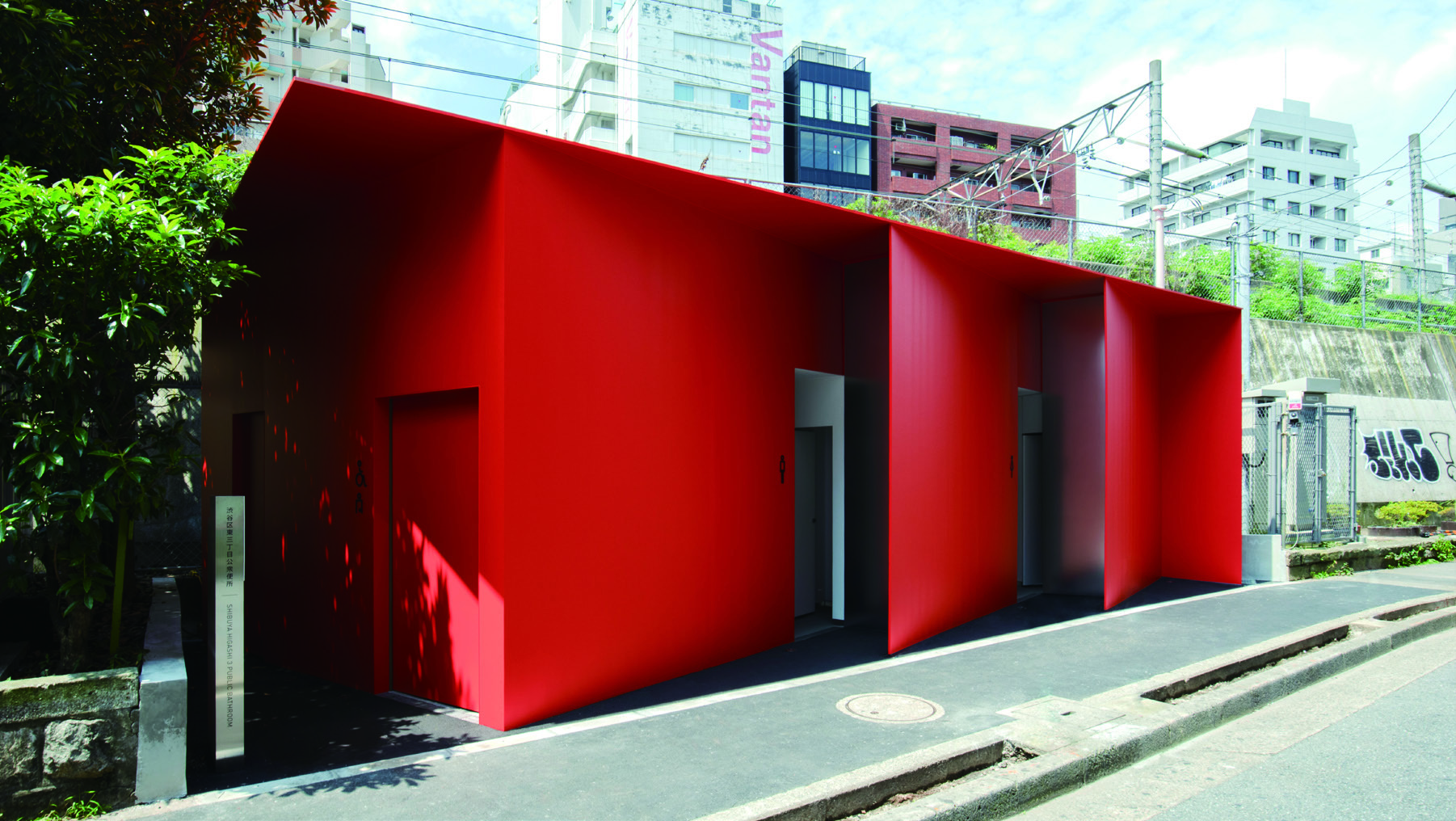 뉴욕에서 활동하는 디자이너 다무라 나오는 멀리서도 눈에 띄는 새빨간 화장실을 제안했다. 트라이앵글형 대지의 형태에 맞게 설계한 이곳은 남성용, 여성용, 장애인용으로 공간을 3분할한 1인용 화장실이다. 화장실로 진입하는 자연스러운 사선 동선을 따라 벽체를 세워 외부 시선을 차단했다. LGBTQ+ 커뮤니티가 이용할 때 불편한 감정이 들지 않도록 의도한 것이라는 게 디자이너의 설명. 하지만 진정으로 이들 커뮤니티를 위한다면 성 중립 화장실을 제안하는 게 더 좋았을 뻔했다는 아쉬움이 남는다.