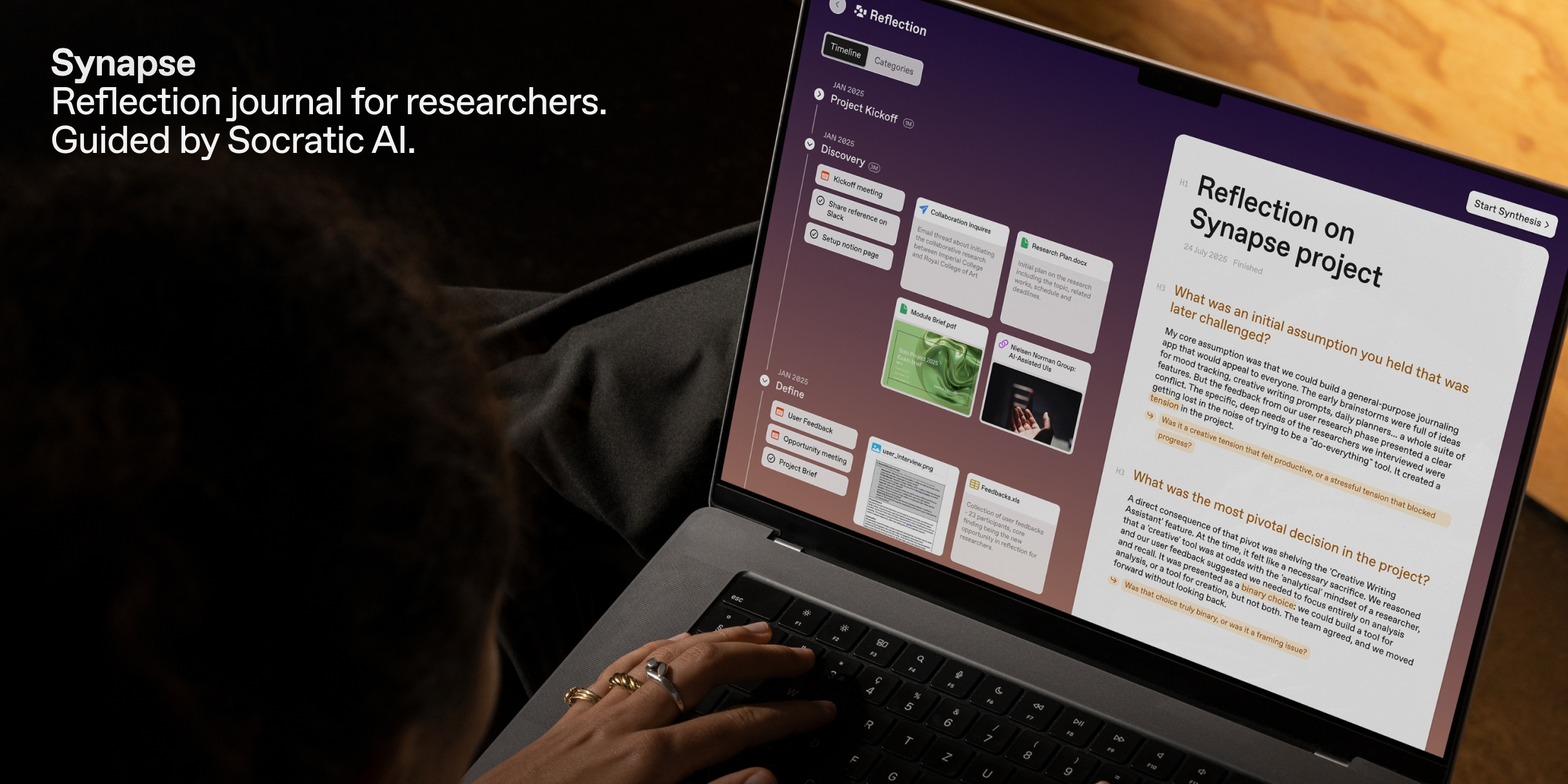 석사 졸업 작품으로 선보인 ‘synapse’가 있는데요. 인공지능에 사고를 이관하는 게 아니라, AI와 인간이 함께 배우고 성장하는 루프를 만드는 플랫폼을 제안한 프로젝트예요. 당시엔 인공지능을 단순히 인간의 노동이나 사고를 대신해 주는 자동화 기계로만 보기보다는, 오히려 사람에게 끊임없이 자극을 주고 함께 생각할 수 있도록 돕는 존재로 만들면 어떨까 하는 문제의식에서 출발했습니다.